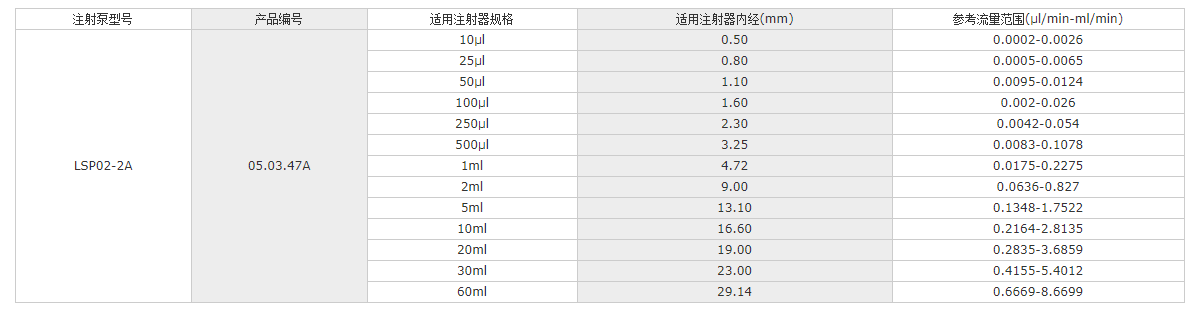 LSP02-2A注射器內(nèi)徑輸入功能:可從列表中選擇注射器或者直接輸入注射器內(nèi)徑