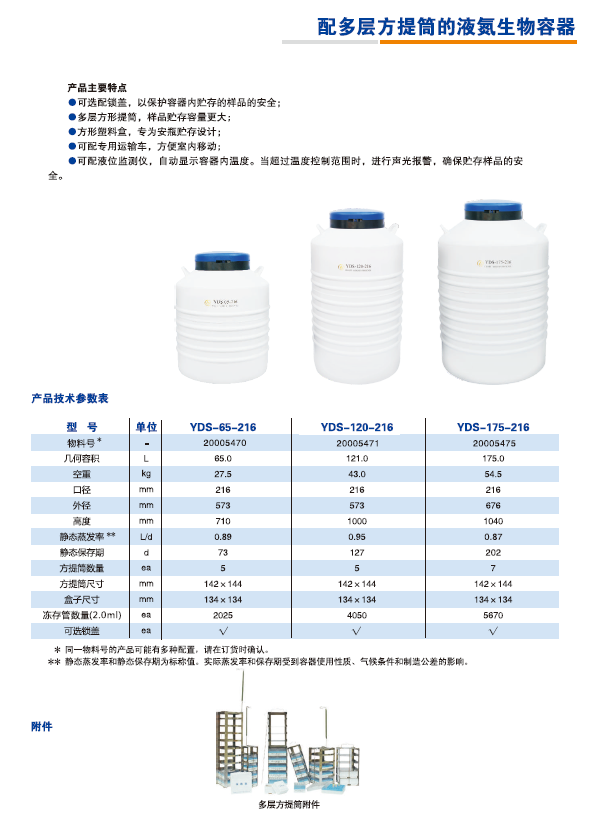 > 成都金鳳多層方提桶的液氮生物容器YDS-65-216