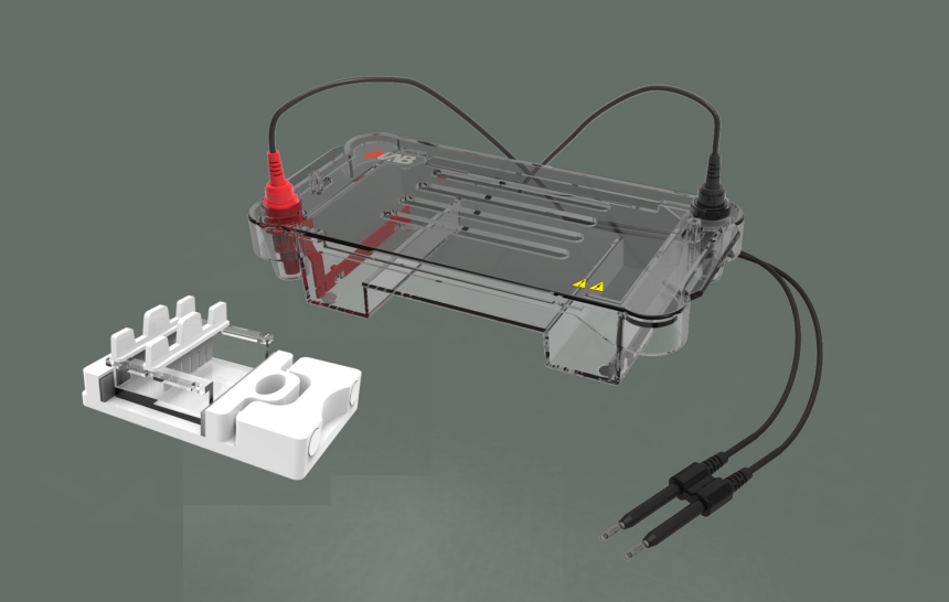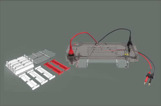 l 平行排列一體式灌膠架,可同時觀察兩塊凝膠