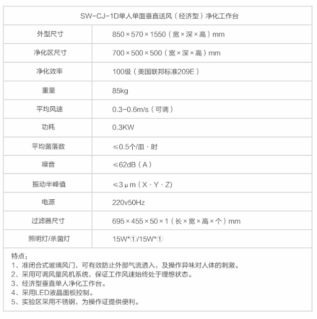 蘇州智凈經(jīng)濟(jì)型凈化工作臺(tái)(單人單面,垂直送風(fēng))SW-CJ-1D