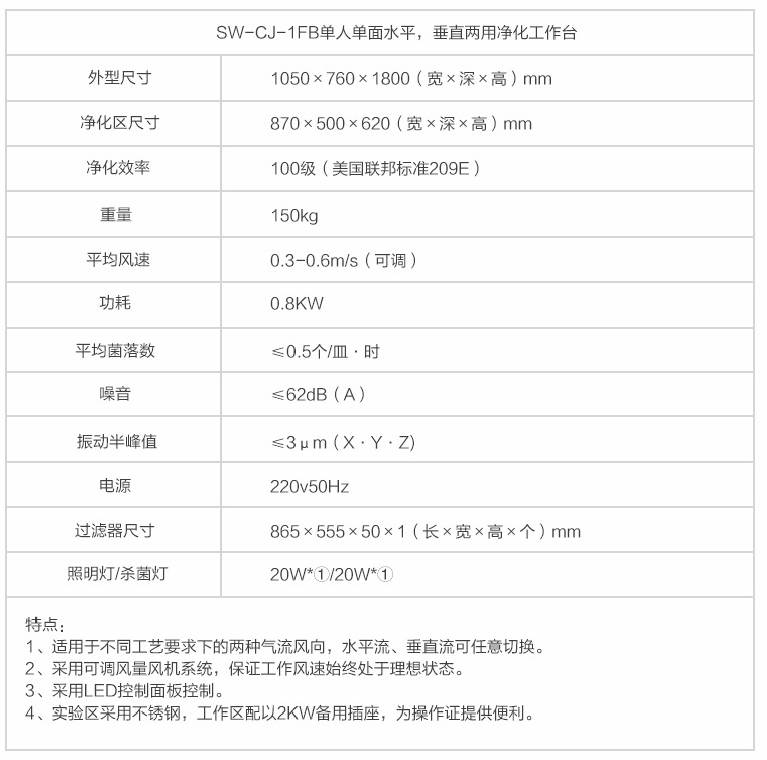 蘇州智凈單人單面水平、垂直兩用凈化工作臺 SW-CJ-1FB