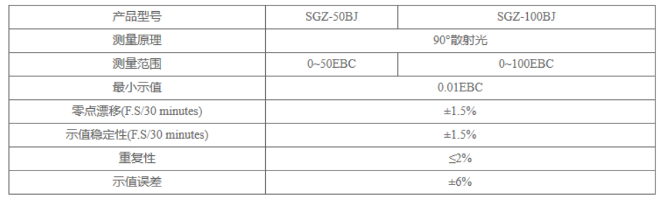上海悅豐SGZ-50BJ啤酒濁度計(jì)技術(shù)參數(shù):