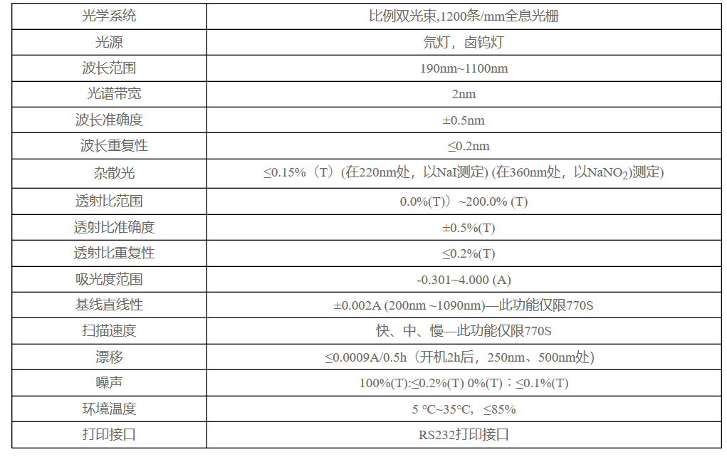 采用比例雙光束監(jiān)視光路結(jié)構(gòu),,高性能、低雜散光“閃耀全息光柵”,高分辨率的單色器, 具有出眾的測(cè)量精度、準(zhǔn)確性、重現(xiàn)性和穩(wěn)定性。